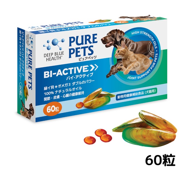 〈取寄5日〉【ピュアペッツ】緑イ貝+オメガ3 バイ-アクティブ ダブルのパワー 犬猫用 サプリメント 60粒