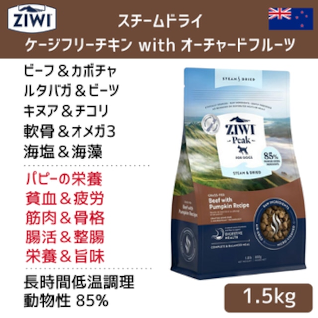 〈取寄5日〉【ZIWI】スチームドライ・グラスフェッドビーフ with パンプキン 1.5kg