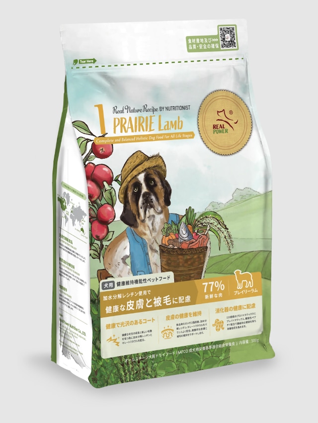 〈即日〉【Real Nature】皮膚ケア・プレイリーラム ドライフード 総合栄養食 成犬~シニア 小型犬~大型犬 皮膚ケア 商品詳細 加水分解レシチン使用で、健康な皮膚と被毛に配慮 77% 新鮮な肉 健康で光沢のあるコート 皮膚の健康を維持 消化器の健康に配慮 世界の信頼できるサプライヤーからの選ばれたプレミアム原材料 新鮮な肉(ラム)、新鮮な魚貝(サーモン、ホタテ)、精製台湾蓬莱米、動物性脂肪(アンチョビ油、鶏油、混合トコフェロールで酸化防止)、オーツ麦、 加水分解鶏肉ペプチド、亜麻仁、ビート、エクストラバージンオリーブオイル、台湾フリーズドライ野菜(人参、南瓜、キャベツ、ほうれん草)、台湾フリーズドライ果実(りんご)、アルファルファ 有機酸(乳酸、クエン酸)、タウリン、加水分解レシチン、複合消化酵素(プロテアーゼ、アミラーゼ、セルラーゼ、βグルカナーゼ)、セピオライト、βグルカン、コラーゲンペプチド(魚皮由来)、ミネラル類(有機亜鉛、有機クロム、鉄、マンガン、銅、亜鉛、セレン、コバルト)、グルコサミン、コンドロイチン、ユッカシジゲラ抽出物、マリーゴールド抽出物(ルテインの源)、酸化防止剤(緑茶、ミント、ローズマリーエキス)、DL-メチオニン、複合プロバイオティクス(乳酸菌、ビフィズス菌ロンガム種、枯草菌)、ビタミン類(A、B1、B2、パントテン酸、B6、葉酸、B12、被覆アスコルビン酸、D3、天然ビタミンE、コリン)、Lカルニチン. リアルネイチャーレシピ健康維持機能性ペットフードとは、栄養療法に基づき、基本的要素を超えた新しい機能性成分を配合し、栄養を補給するホリスティクな“次世代のペットフード (健康維持機能性食品)”です。使用される機能性成分には『キレートミネラル・複数の酵素・プレバイオティクス繊維・プロバイオティクス・オメガ3脂肪酸(DHA/EPA)、コラーゲンペプチド』等があります。 現代を生きる犬や猫の栄養必要量を栄養療法に基づき正確に計算、良質な肉源たんぱく質や機能性成分を理想的な割合で配合し、ただ満腹感を与えるだけではなく、ペットのあらゆる側面の健康を配慮し、パートナーの生涯の健康を徹底的にサポートします。 研究により、毎日の食餌として摂取する事で(消化器・皮膚・骨と関節)の健康また加水分解ぺプチドの使用で食物アレルギーに配慮等で、より多くの健康上の利点が得られる事がわかっています。 Real Nature Recipeで使用している健康維持を目的とする主な機能性成分の一部 キレートミネラル キレートミネラル 毎日を健やかに 丈夫で柔軟な関節を目指す と共にキレートミネラルで 健康を維持します。 CCB=Clean,Create,Build 健康維持の為、 プロバイオティクスの 成長に必要な栄養を補給。 複数の酵素 健康を維持するアミラーゼ、 プロテアーゼ、セルラーゼ、 β-グルカナーゼ等、 複数の消化酵素を配合。 深海魚オイル 健康維持に配慮してオメガ-3の脂肪酸を 豊富に含む深海のカタクチイワシ魚油と、 深海アラスカ魚油を配合、 肌とコートの健康を強化します。 複数のプロバイオティクス プロバイオティクスは腸に優しい環境を作り、 有益な細菌の成長を支え、健康維持とバランス の取れた腸内フローラの維持に役立ちます。