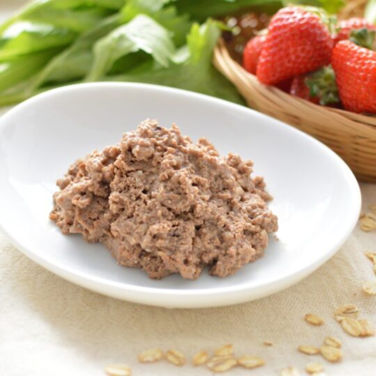 豚(筋肉、内臓)*、オートミール*、ビーツ*、セロリ*、いちご*、月見草油*、タラ肝油、ウコン根*