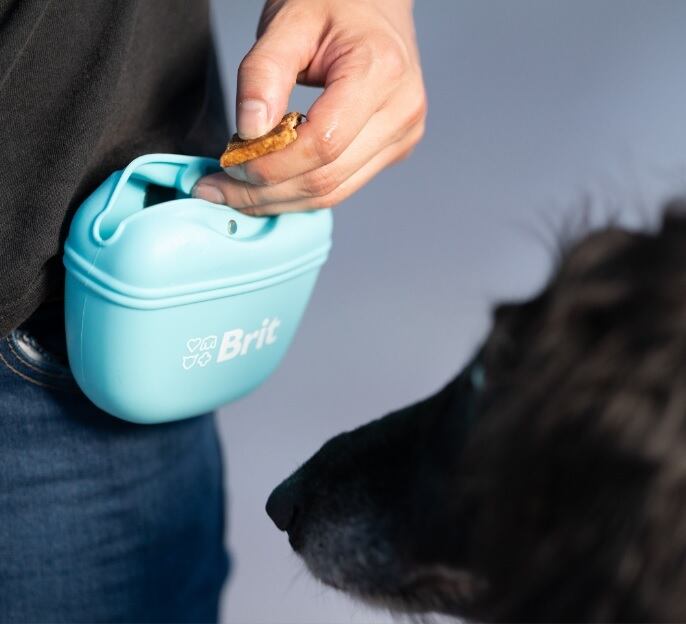 衛生的なシリコーン製のトリーツポーチ。4色(黄緑、黄色、水色、茶色)。大型クリップ付き。取出し口はマグネットで自然に閉まります。