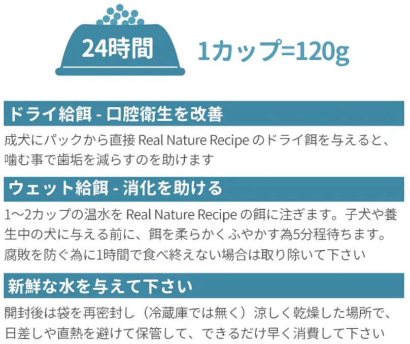 リアルネイチャーレシピ健康維持機能性ペットフードとは、栄養療法に基づき、基本的要素を超えた新しい機能性成分を配合し、栄養を補給するホリスティクな“次世代のペットフード (健康維持機能性食品)”です。使用される機能性成分には『キレートミネラル・複数の酵素・プレバイオティクス繊維・プロバイオティクス・オメガ3脂肪酸(DHA/EPA)、コラーゲンペプチド』等があります。