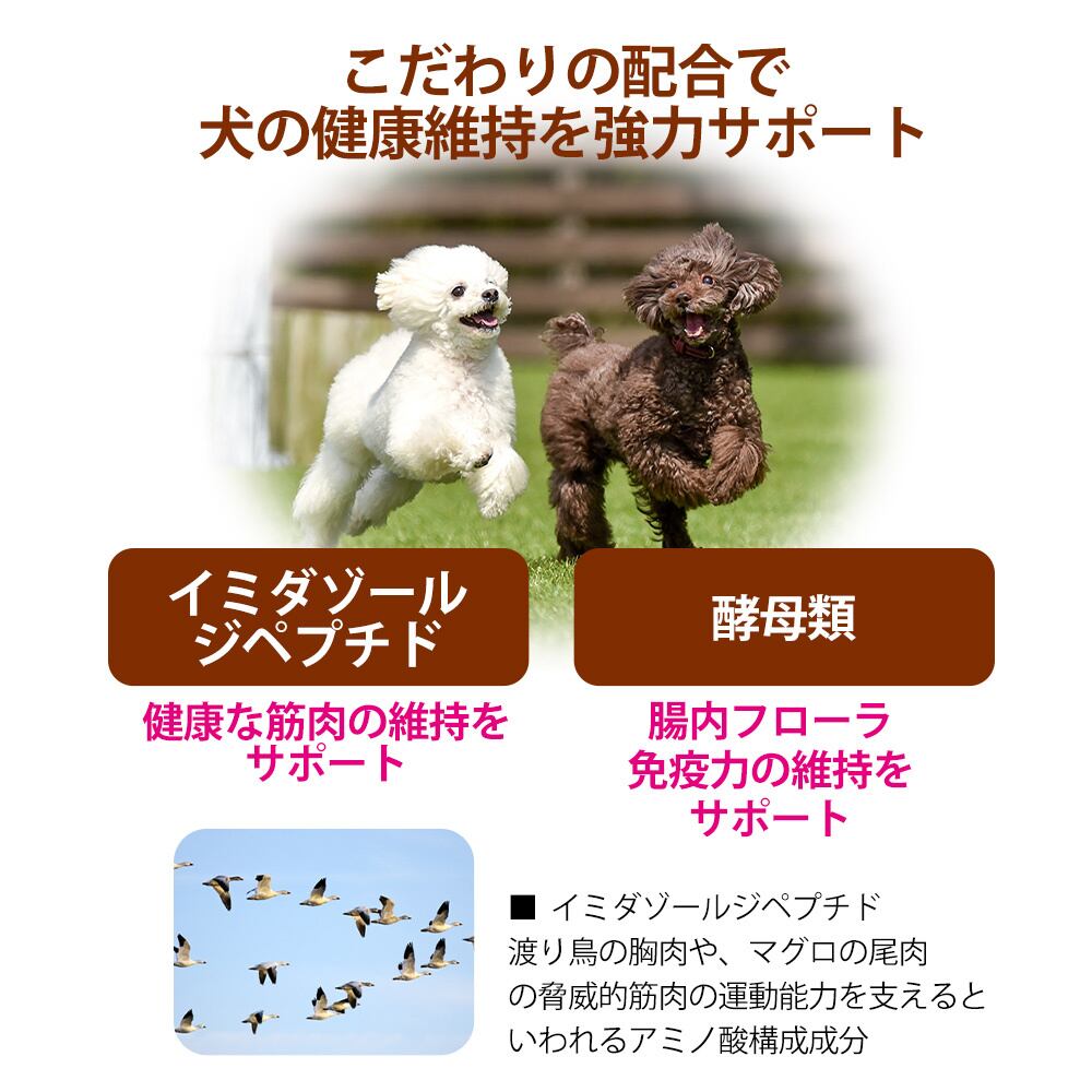 さまざまな肉の中でもミネラル分(特に鉄分)を豊富に含む鹿肉を配合することで、普段摂取しにくいミネラル分を食事からの補給を可能にしました。