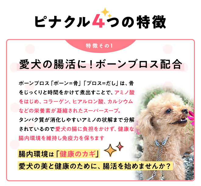 NEWピナクル。新低アレルゲンレシピは、ボーンブロスを配合。愛犬の腸活に!