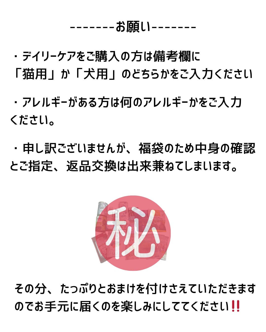 ・デイリーケアをご購入の方は備考欄に「猫用」か「犬用」のどちらかをご入力ください