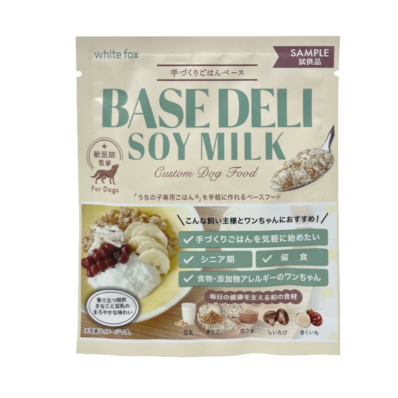 ベースデリソイミルクは毎日の健康を支える和の食材(豆乳・きなこ・白ごま・しいたけ・きくいも)を使用し、香り立つ焙煎きなこと豆乳のまろやかな味わいが特徴です。