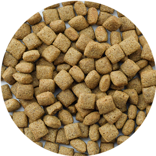 主要タンパク源として、良質なたんぱく質で低カロリーなパンガシウス(淡水白身魚)を使用しています。日本の飼育環境に合わせて、低カロリー設計を基本に原料を厳選し、代謝エネルギー320kcal/100gとしました。食欲旺盛な犬にも満足できる給与量となっています。