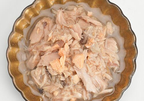 ● 原材料名:きはだ鮪、紅鮭、鮪エキス、こんにゃく粉、オリゴ糖、ビタミンE