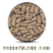 フィーラインナチュラルは基本的な与え方として、本来の食事に近づけるために、生食の水分値に戻してから与えていただくフードですので、粉状になっているものはそのまま、粒状のものはくずしてから、水かぬるま湯(37℃以下)を加えると短い時間で戻ります。