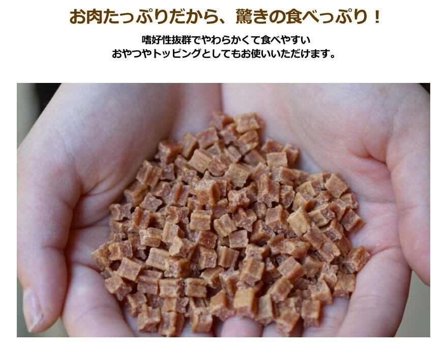 給与量を目安にお与えください。また嗜好性の高い製品の為、トッピングや スナックとしてもご使用頂けます。