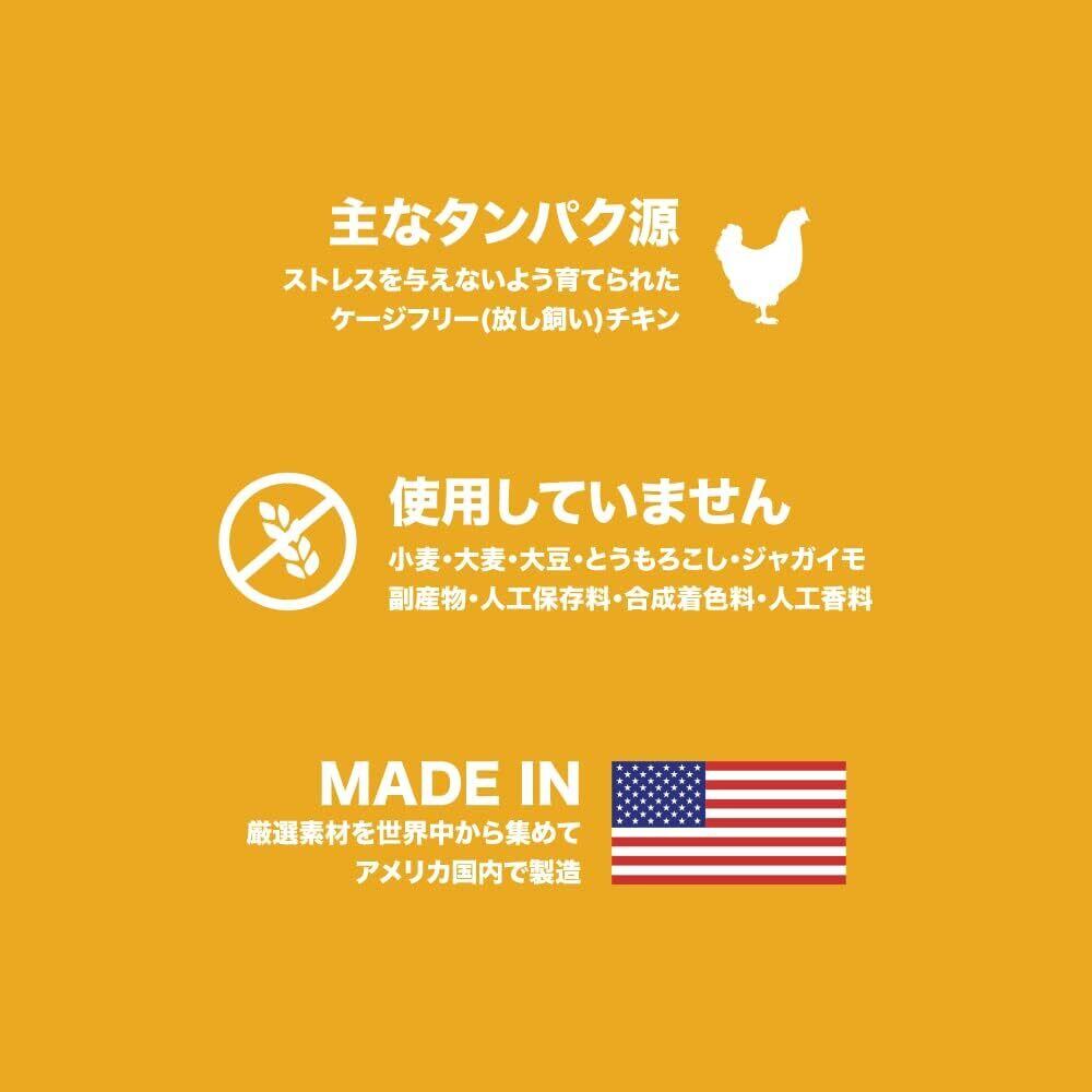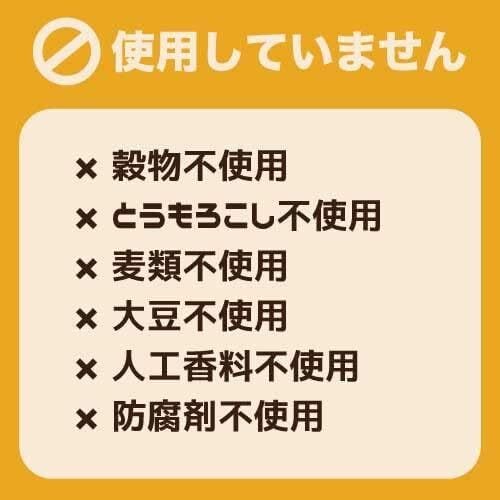 ● グレインフリー(穀物・トウモロコシ・小麦)、大豆、ジャガイモ、人工着色料または保存料不使用。