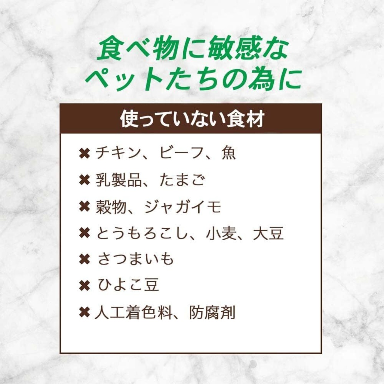 ● 鶏肉、牛肉、魚、乳製品、卵、など食物アレルギーの原因になる食材は使用していません。