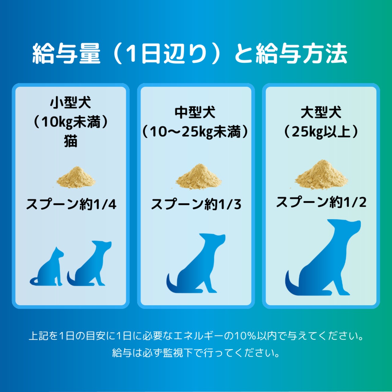 【動物用健康補助食品(犬猫用)】愛犬愛猫の関節・皮膚・心臓の健康を維持するサプリメントです。自然由来の栄養成分で長期間安心して与えられます。