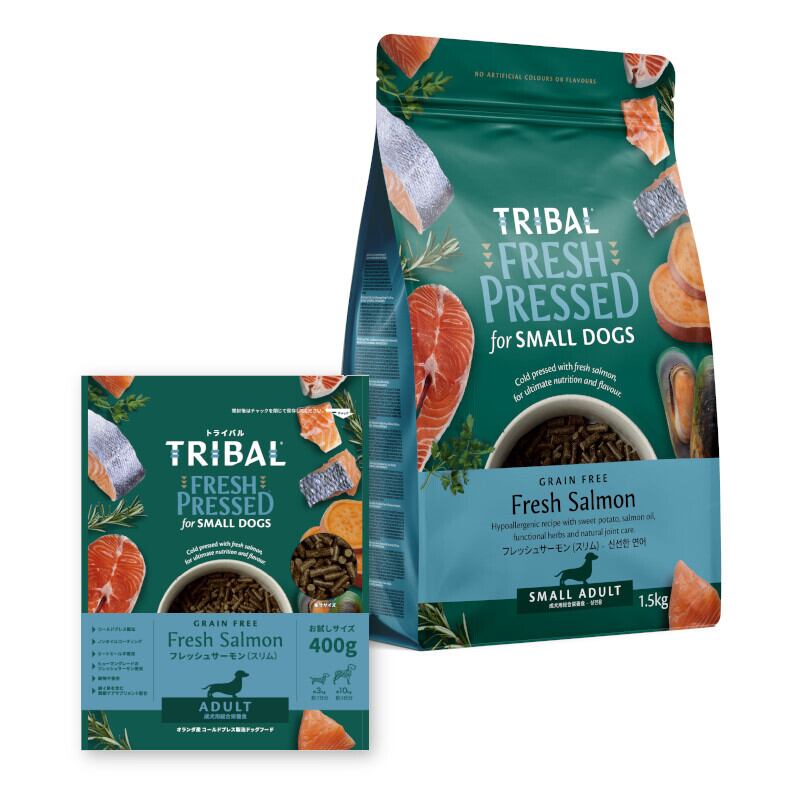 フレッシュサーモンを使用し、ミートミール不使用のコールドプレス製法。