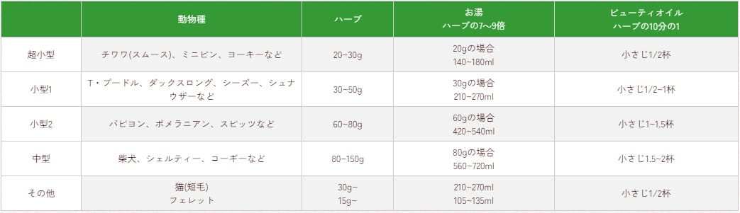 ※ハーブパウダーの量は体の大きさや被毛の長さ・種類により異なります。