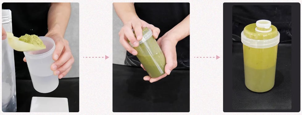 ・シェーカーには必ずお湯を先に入れてください。後からお湯を入れるとダマになり、きれいなペーストができません。