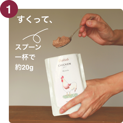 ドライフードなどに混ぜる場合、1日の必要カロリーの20%程度の範囲でお使いください。