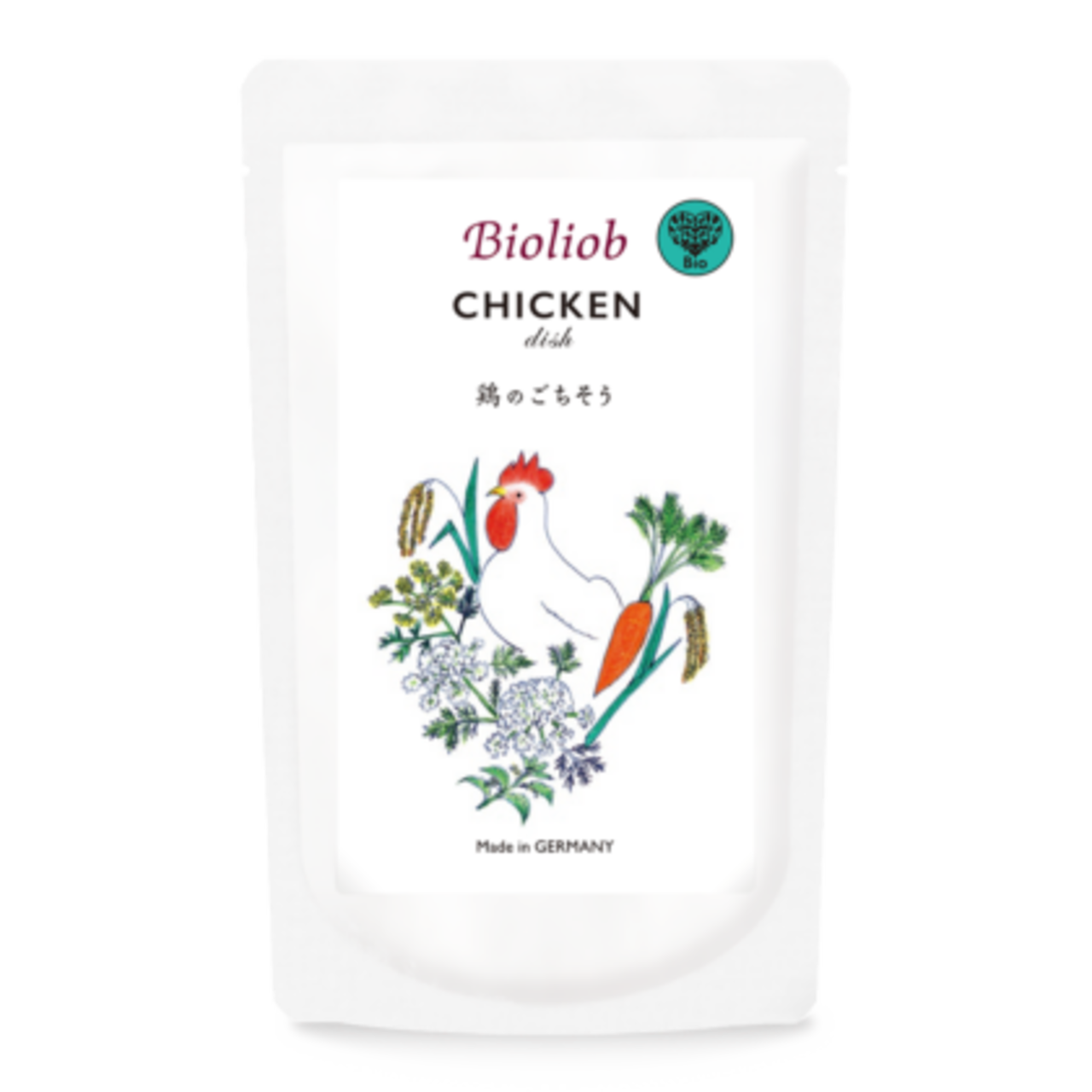 ビオの鶏にβ-カロテン豊富なにんじんや、天然のマルチビタミンと呼ばれるネトルなどをプラスしました。