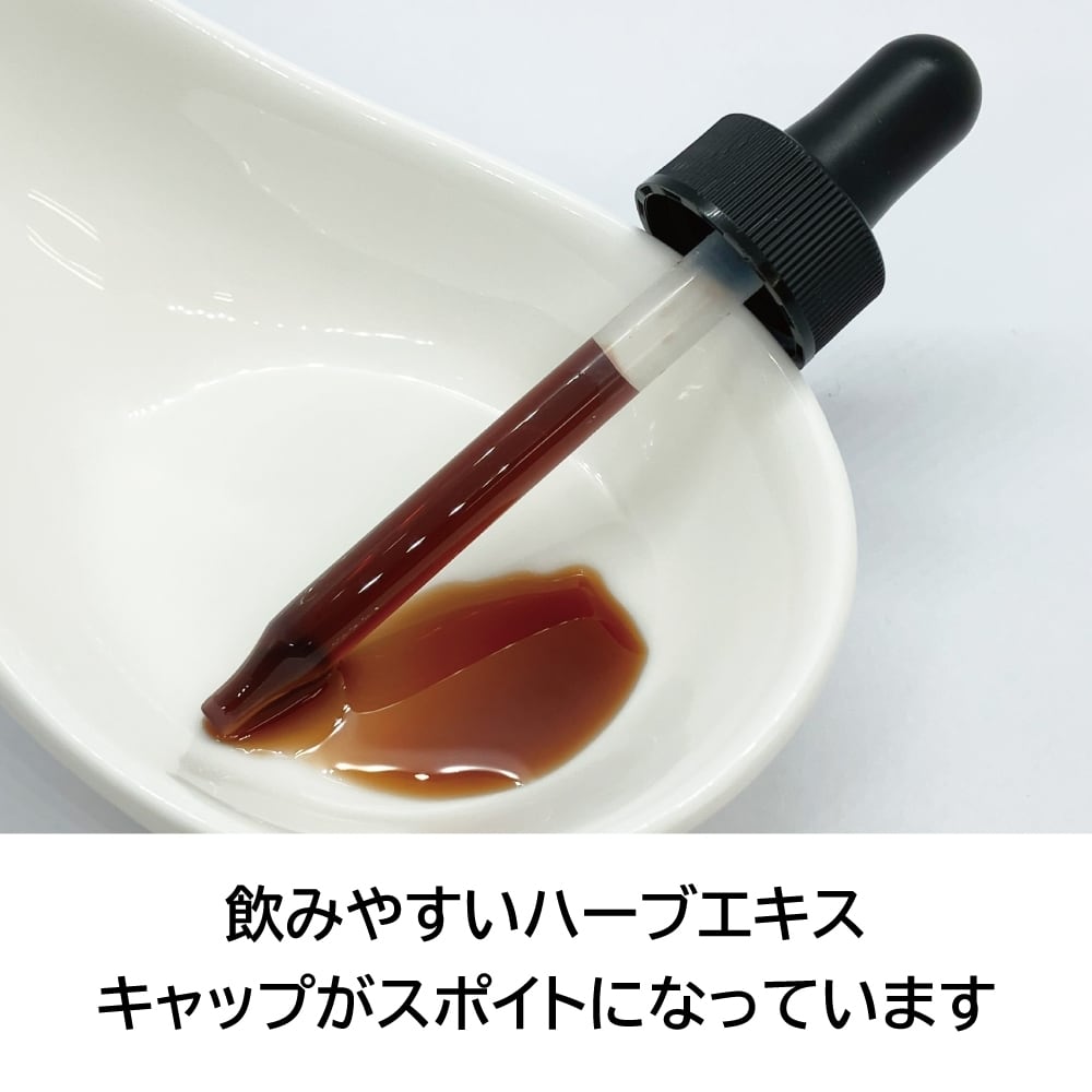 植物グリセリン、クリーバーズの地上部、ネトルの葉、ダンデライオンの根・葉、バードックの根、マシュマロウの根、ホーソンの果実・葉、ゴツコーラの葉、カモミールの花、冬虫夏草の子実体、霊芝の子実体
