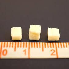 チーズに含まれるカルシウムは体内に吸収されやすいのが特徴で、少量でたくさんのカルシウムを効率よく摂取することが出来ます。カルシウムは骨や歯などを構成する重要な栄養素です。骨粗しょう症の予防や子犬の発育にも大きな働きをします。ただし、過剰摂取は過剰症を引き起こし、様々な障害の原因になるので注意が必要です。一粒が3~4ミリと小粒なので、トレーニングに最適なダイスチーズです。
