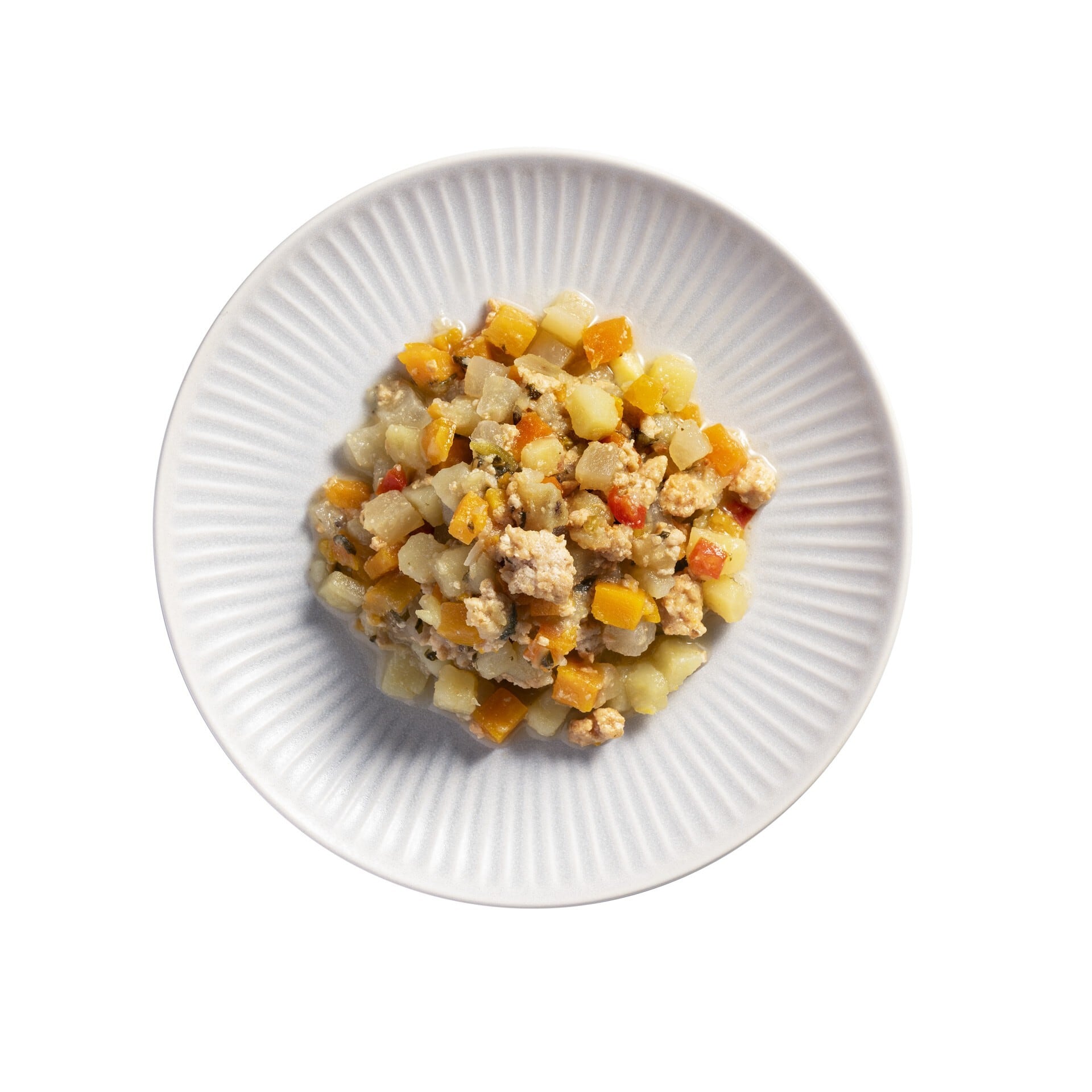 鶏むね肉(徳島県産)、さつまいも(徳島県産)、だいこん(国産)、にんじん(徳島県産)、小松菜(国産)、しいたけ(徳島県産)、カラーピーマン(国産)、葛粉(国産)、混合節だし(さば節・むろあじ節・いわし節)(国産)) (原材料の一部に 鶏肉・さば を含む)