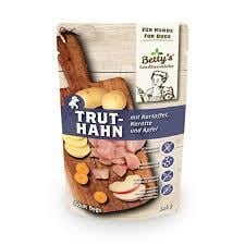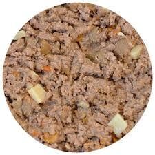 ターキー 60%(心臓、精肉、肝臓、首)、ブイヨン 25.8%、ポテト 5%、ニンジン 4%、リンゴ 4%、ミネラル 1%、亜麻仁油 0.2%