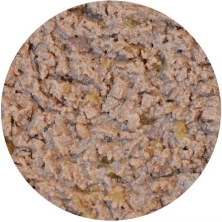 チキン 49%(精肉、肝臓、心臓、砂肝)、ブイヨン(チキン、キジ) 31.9%、キジ 18%、ミネラル 0.5%、乾燥卵殻 0.5%、ボラージオイル 0.1%