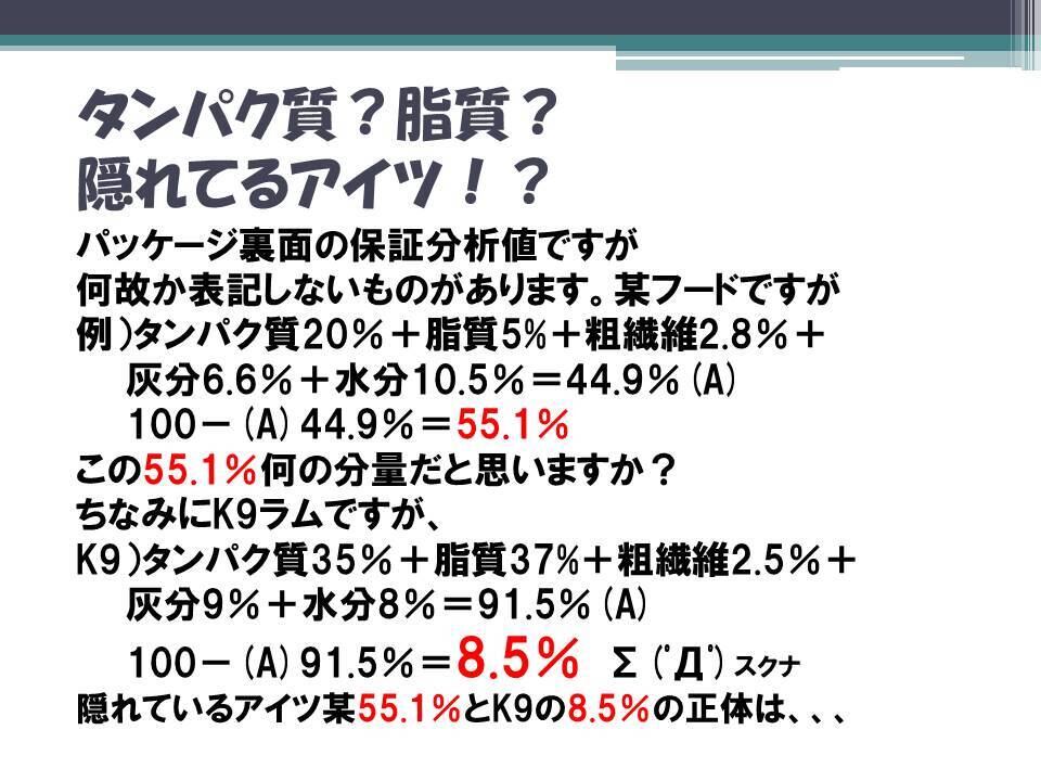 子羊肉、グリーントライプ(子羊)、心臓(子羊)、腎臓(子羊)、脾臓(子羊)、肝臓(子羊)、血(子羊)、骨(子羊)、ニュージーランド緑イ貝、魚油、フラックスシードフレーク、リン酸二カリウム、乾燥昆布、塩化ナトリウム、タウリン、ビタミンE、酸化マグネシウム、プロティネイト亜鉛、プロティネイト銅、プロティネイトマンガン、ビタミンB1、葉酸、ビタミンD3