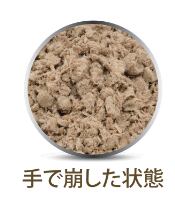 フリーズドライ商品につきましては、犬や猫の消化器官に配慮し、穀類・イモ類・豆類などの、「つなぎ」を一切使用せず、焼き固めてもいないため、粒が柔らかく、製造ロットにより、あらかじめ細かく、くずれているものがございます。