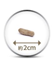 また、一般的なドライフードのように、肉食動物である猫にとって不要な穀類・イモ類・豆類などの粘性の高いツナギや、量増しとしての原材料を一切使用していないため、1粒1粒が柔らかく簡単にほぐせるようになっています。
