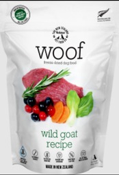 骨付きヤギ肉(野生)、ラムグリーンとライプ、ラムレバー、ラムキドニー、チンゲンサイ、ブルーベリー、クランベリー、ケルプ、NZ緑イ貝、NZマヌカハニー、ローズマリー、オーガニックバージンココナッツオイル、ホキ油、ビタミンD3、塩、塩化コリン、亜鉛アミノ酸複合体、鉄アミノ酸複合体、ビタミンE、銅アミノ酸複合体、マンガンアミノ酸複合体、ビタミンB2、ビタミンB1