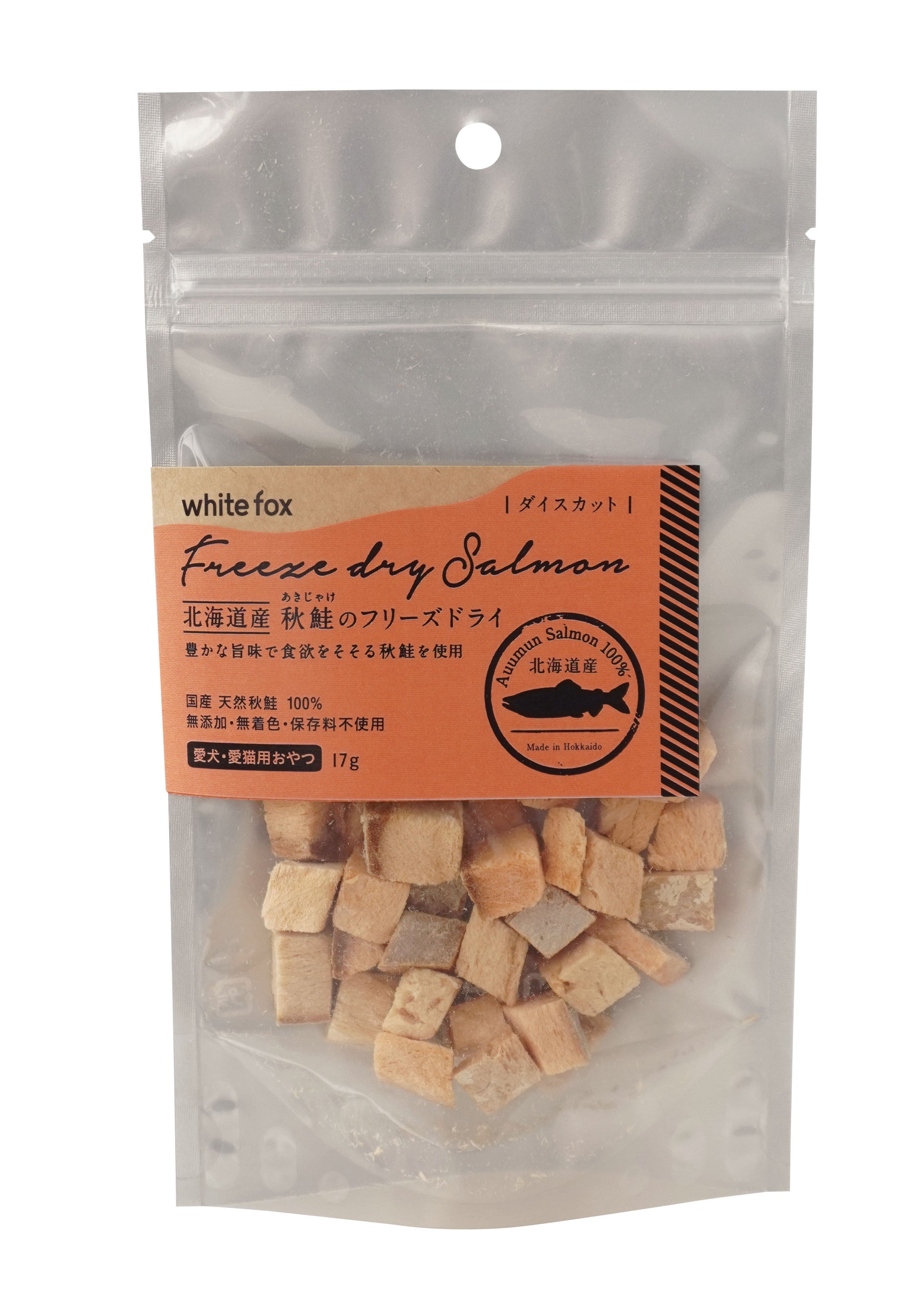 〈即日〉【white fox】北海道産 秋鮭のフリーズドライ ダイス17g 犬猫兼用