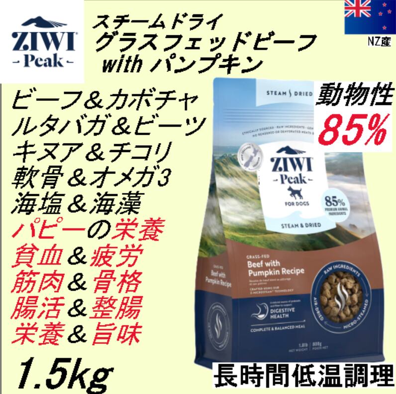 〈即日〉【ZIWI】スチームドライ・グラスフェッドビーフ with パンプキン 1.5kg