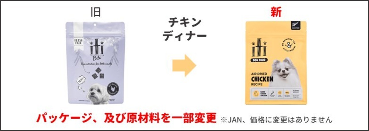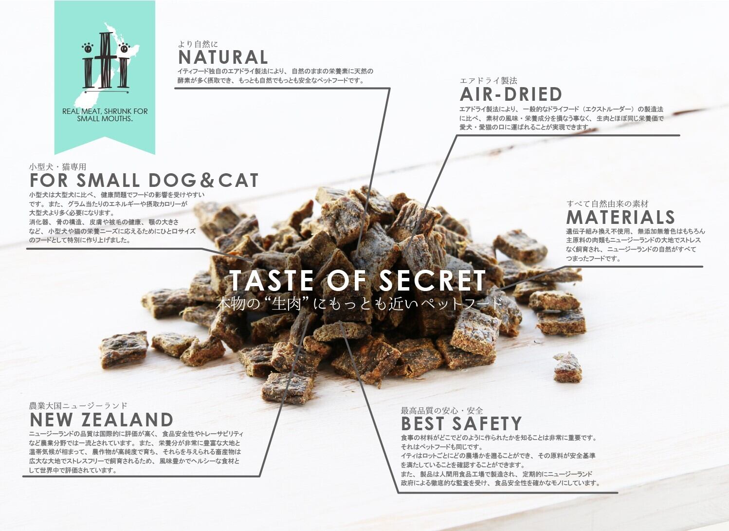 ・イティのエアドライフードやトリーツは鮮度を保つため小包装され、エージレス(酸化防止剤)が封入されています。